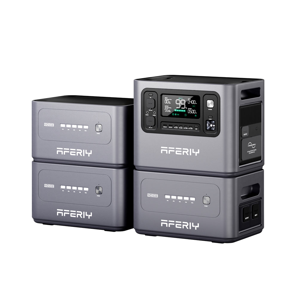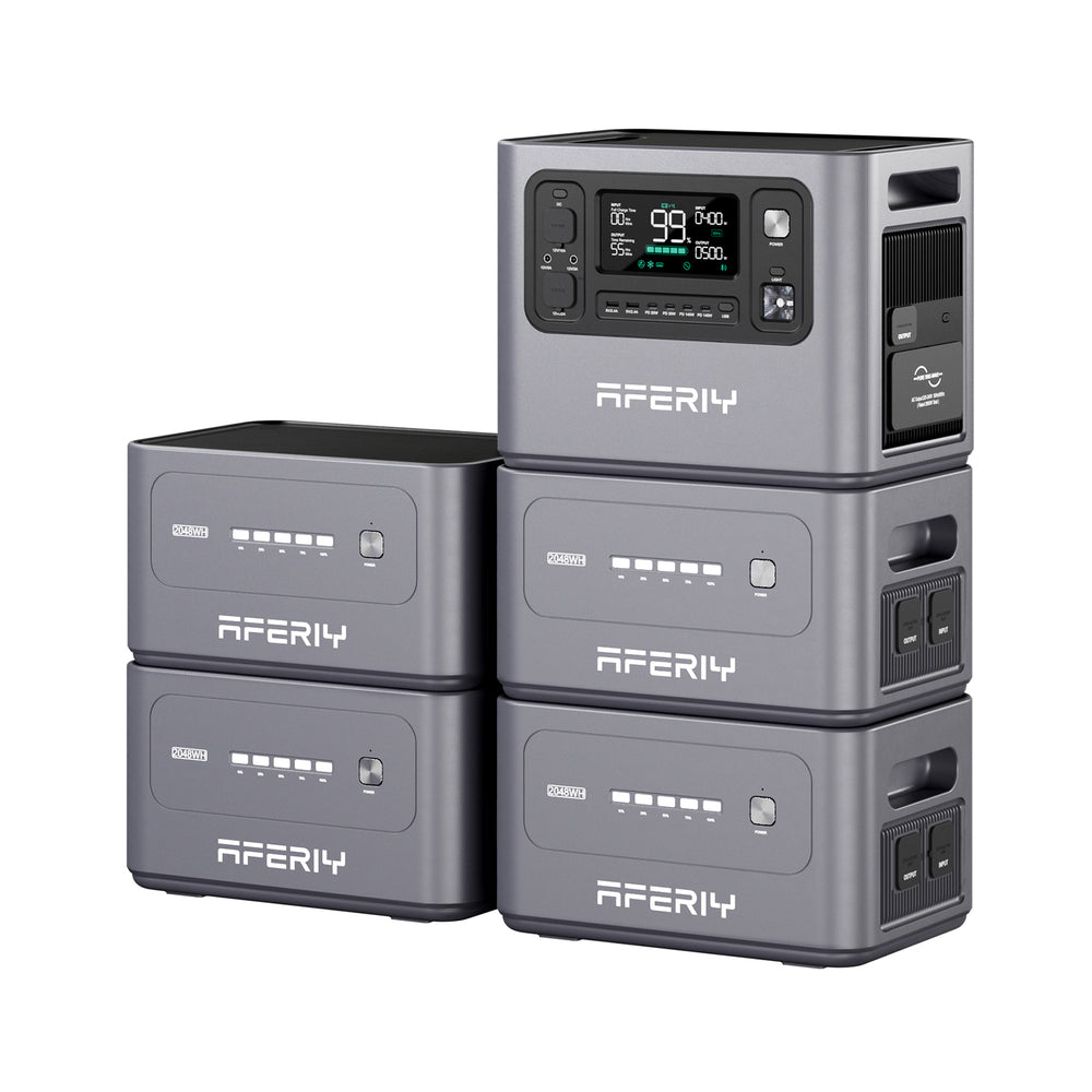 The AFERIY P280 2800W 2048Wh portable power station can be expanded up to 10,240Wh. With its pure sine wave output, 13 output ports, and durable LiFePO₄ battery, it easily powers most household appliances. Perfect as a portable battery, portable solar station, or backup power source at home, for camping or outdoor adventures, with remote control via app and Bluetooth.